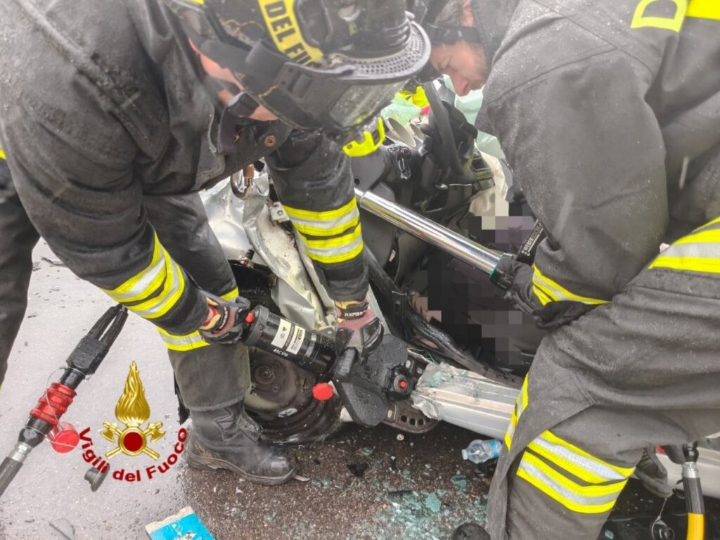 Per consentire i soccorsi in sicurezza, i Vigili del fuoco hanno dovuto utilizzare divaricatori e cesoie idrauliche al fine di creare un varco nella struttura di uno dei veicoli e liberare un occupante rimasto incastrato. Le sue condizioni sono gravi.