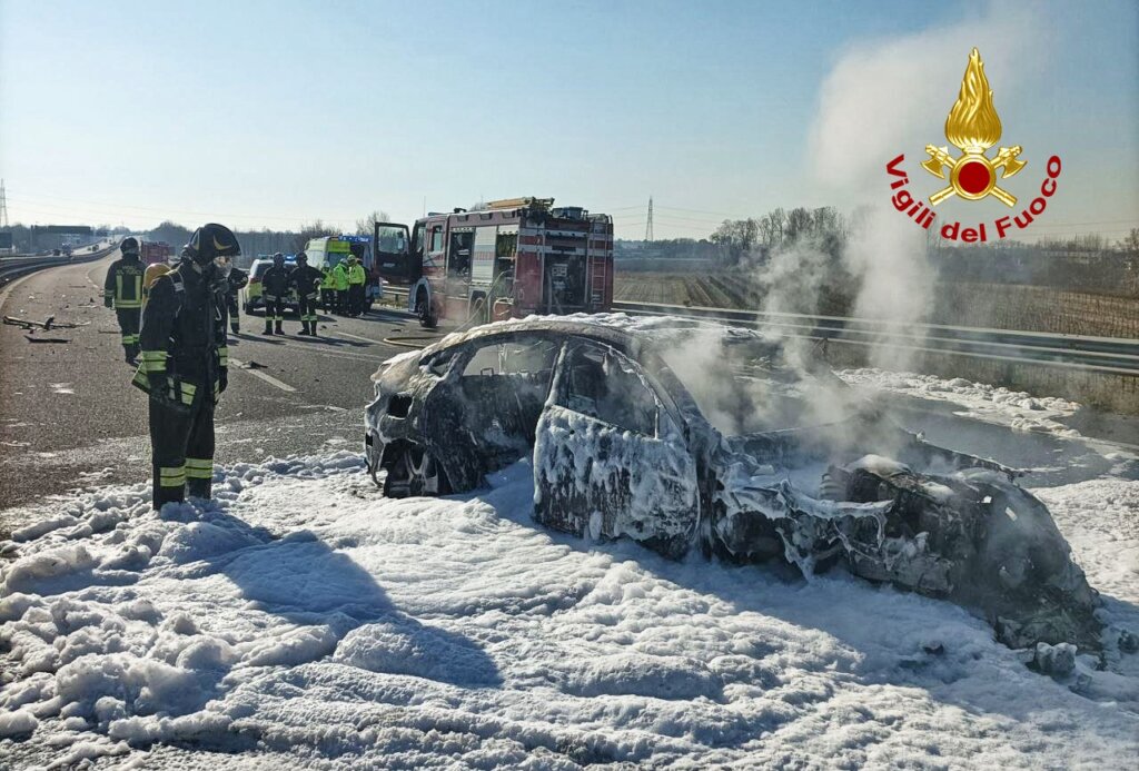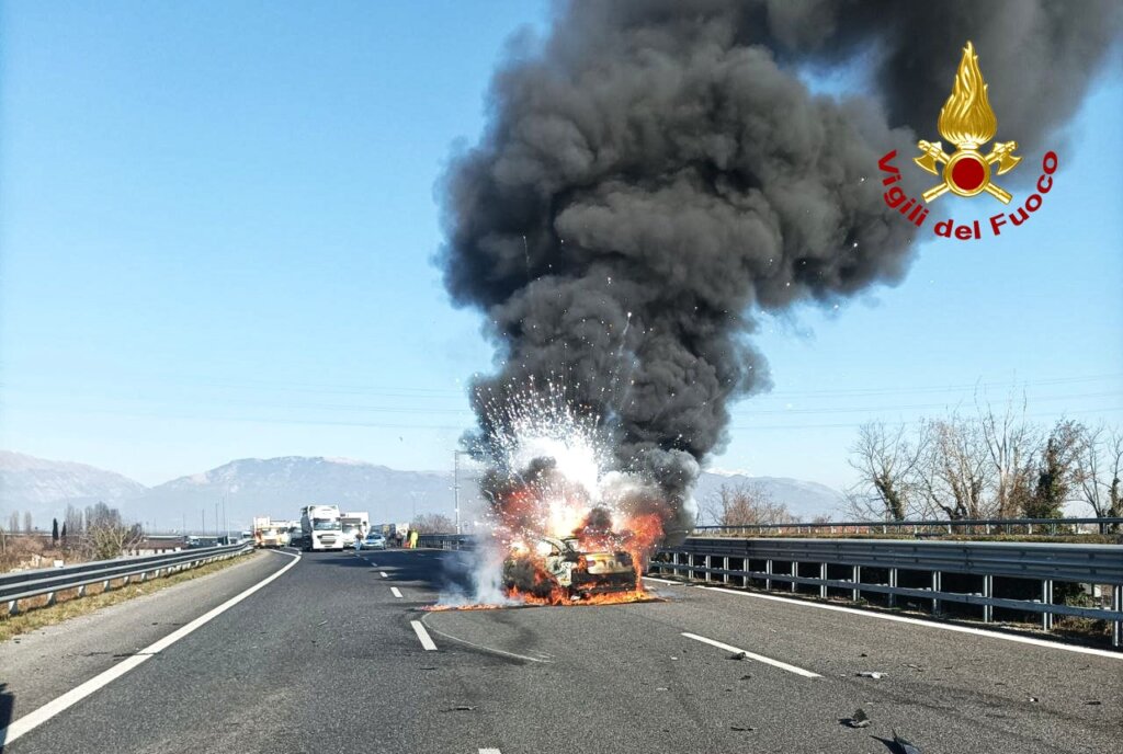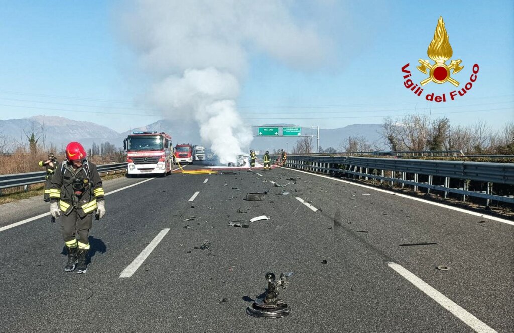 VENETO- Scontro in autostrada, un’auto prende fuoco ed esplode: due feriti