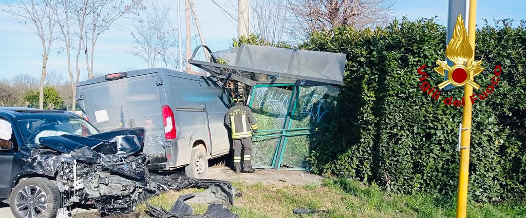 Veneto – Scontro tra furgone Amazon e SUV: tre feriti, grave corriere soccorso in elicottero. Travolte una pensilina e una cabina Enel