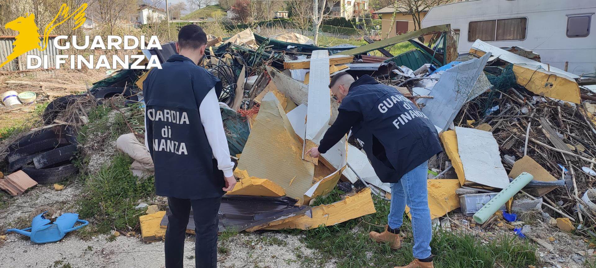 Sul posto, il Nucleo di Polizia Economico-Finanziaria ha riscontrato l’accumulo incontrollato di materiali di varia natura, parte dei quali ricoperti dalla vegetazione. Tra questi, sono stati trovati rifiuti pericolosi come lastre in amianto, batterie al piombo, pezzi di motori contaminati da oli e un furgone in stato di abbandono. Presenti anche rifiuti non pericolosi, tra cui pneumatici, elettrodomestici, carta catramata, residui di demolizioni, plastica, materiali ferrosi, poltrone, divani, tavole da surf e sci.