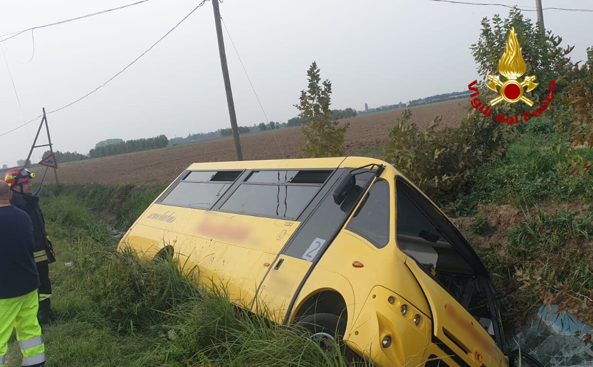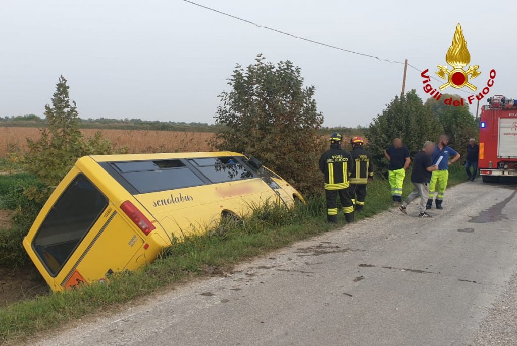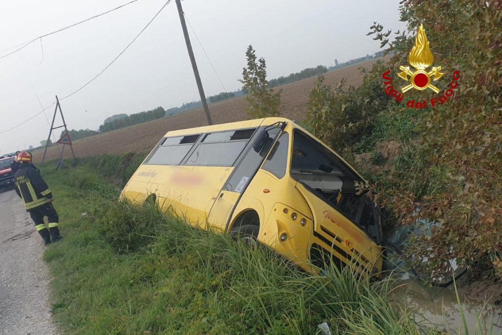Alle 16:30, di venerdì, i vigili del fuoco sono intervenuti Via Carampelle a Minerbe per uno scuolabus finito parzialmente rovesciato fuori strada: ferita una bambina e l’autista. Lo scuolabus, con nove bambini a bordo, tutti di quinta elementare, è finito per cause in corso di accertamento nel canale di scolo, adiacente la strada piegandosi su un fianco. I pompieri arrivati da Legnago, hanno messo in sicurezza il mezzo, mentre due bambine e l’autista sono rimasti feriti. Una bambina è stata portata via in eliambulanza e portata all’Ospedale di Borgo Trento a Verona con un trauma cranico mentre un’altra è stata portata all’ospedale di Legnago in ambulanza. Non sono in pericolo di vita. Ferito lievemente l’autista mentre gli altri bambini sono stati portati in ospedale solo per accertamenti ma non sono feriti.