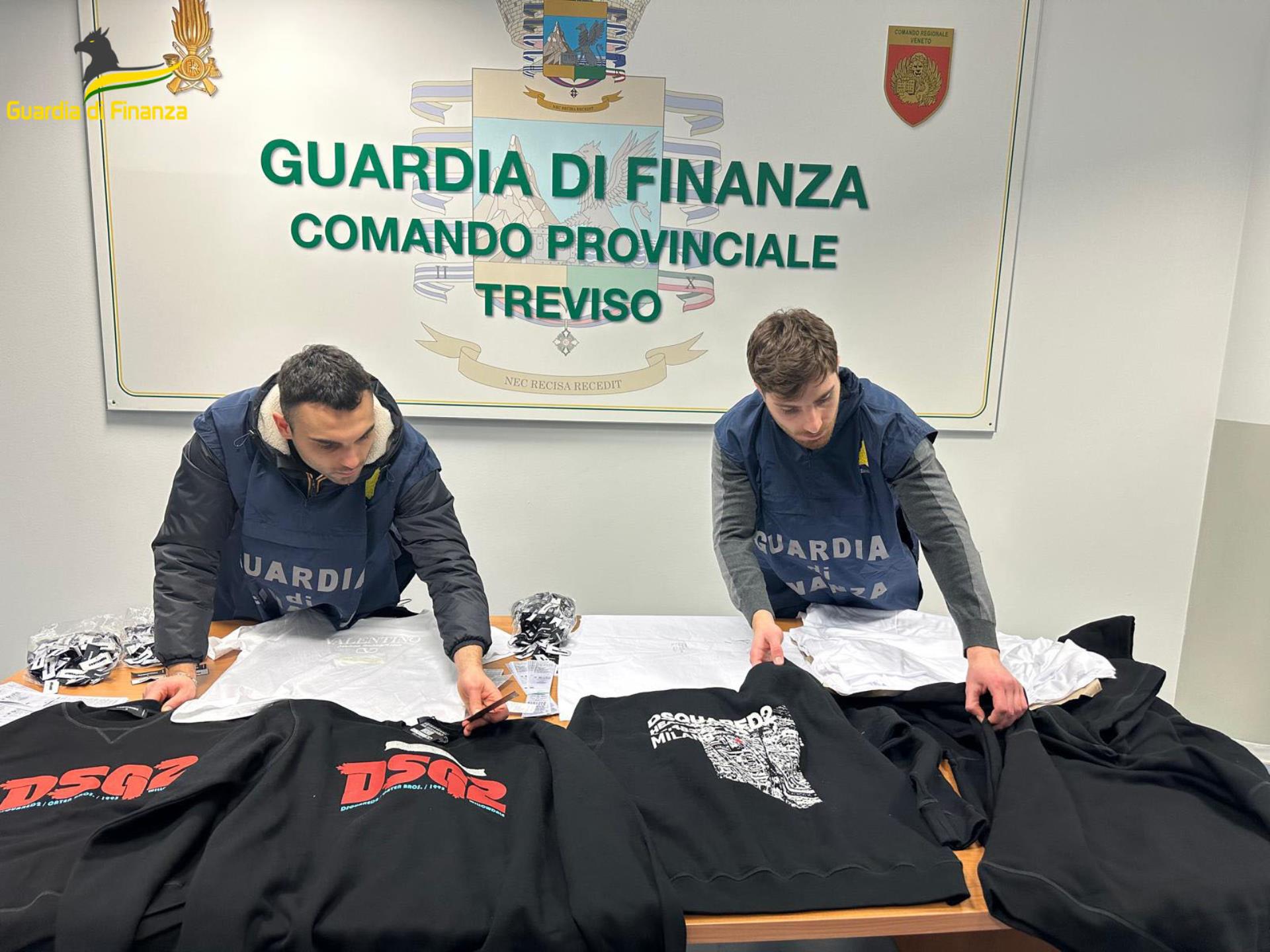 Le Fiamme Gialle del Comando Provinciale di Treviso, nell’ambito dell’attività di servizio svolta a contrasto della contraffazione dei marchi di fabbrica, violazione dei diritti di privativa e immissione in commercio di prodotti non conformi agli standard di sicurezza europei, hanno sottoposto a sequestro probatorio d’iniziativa 4.109 articoli (felpe e t-shirt), riportanti i marchi contraffatti DSQUARED2 e VALENTINO.