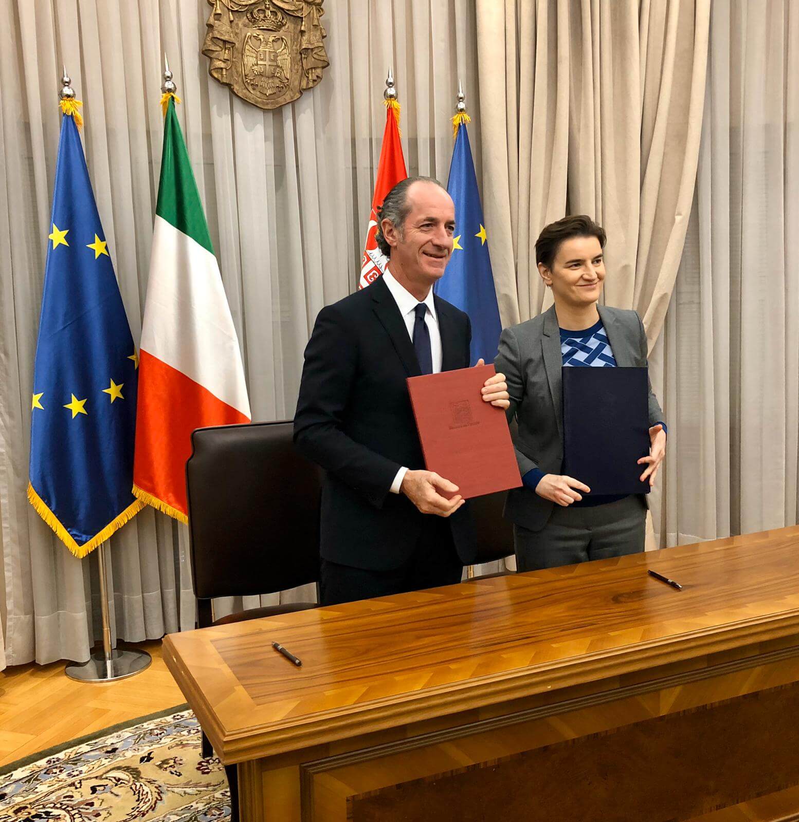 Il Presidente della Regione del Veneto ha siglato ieri con il Primo Ministro della Serbia, Ana Brnabic, un accordo di collaborazione per lo sviluppo economico, sociale e culturale reciproco che rafforzerà un legame storico dal quale derivano anche importanti relazioni commerciali.