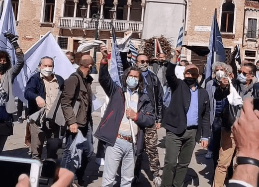 La manifestazione, con distanziamento e con tutti rigorosamente in mascherina, è stata voluta dal gruppo ‘Venezia lavora’ e ha portato gli aderenti prima nel centrale Campo Santo Stefano e poi nel vicino Campo San Maurizio, a due passi dalla Prefettura.