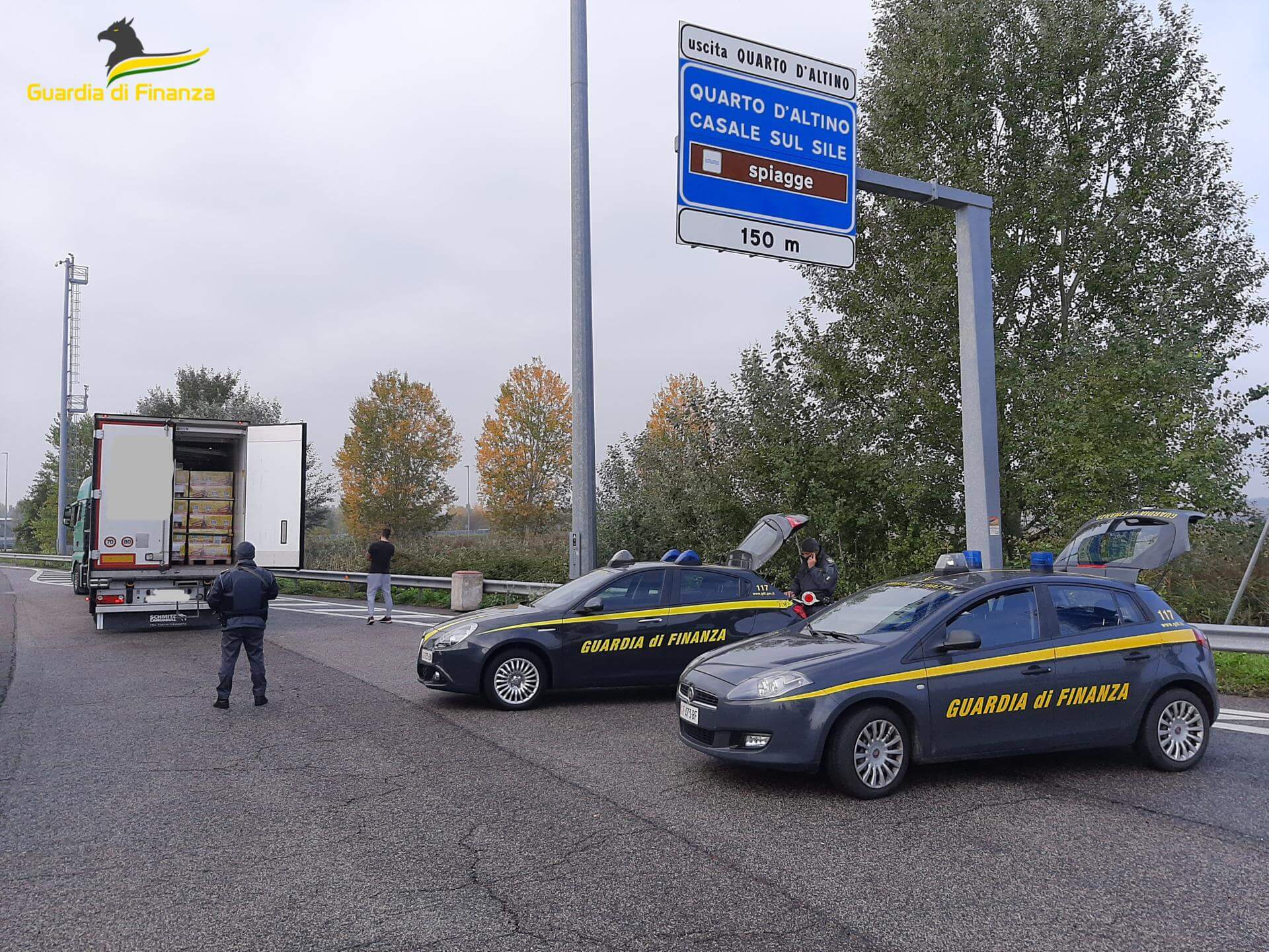Erano circa le due di notte, quando il procedere incerto del mezzo, dopo aver oltrepassato la barriera autostradale, pagando in contanti il pedaggio al casello, ha indotto i finanzieri del Gruppo di Treviso, posizionati da poche decine di minuti per l’esecuzione di un posto di controllo, a selezionarlo per verificare la natura della merce trasportata.
