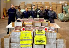 La rimozione del telo scuro e la successiva apertura di uno dei cartoni, sul cui lato esterno comparivano riferimenti a un generico contenuto di prodotti in vetro, ha portato così alla luce l’ingente carico di sigarette, diviso in 14.400 stecche, riportanti il marchio “Rothmans Blue”, normalmente venduto, al dettaglio, al prezzo di 5 euro a pacchetto.