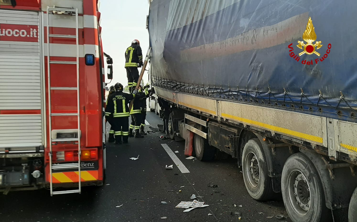 VENETO – Tamponamento in A4 tra 3 tir: feriti 2 autisti (FOTO)