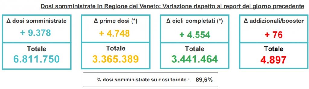 Ecco i dati aggiornati sulle vaccinazioni in Veneto con indicate anche le terze dosi. Ormai 7 persone su 10 hanno completato il ciclo vaccinale.