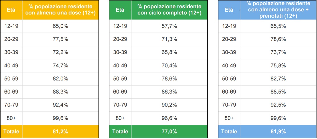 L’81,9% della popolazione vaccinabile ha ricevuto almeno una dose o si appresta a riceverla.