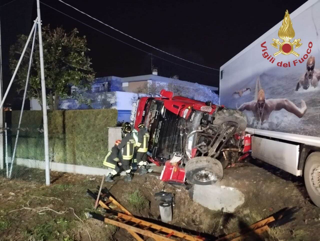 Intervento dei vigili del fuoco nella tarda serata di oggi a Lusia, in provincia di Rovigo. Intorno alle 22.30 due squadre del comando provinciale sono state chiamate ad operare in via Marasso, dove un autotreno è uscito dalla carreggiata andando a sfondare la recinzione di un’abitazione.