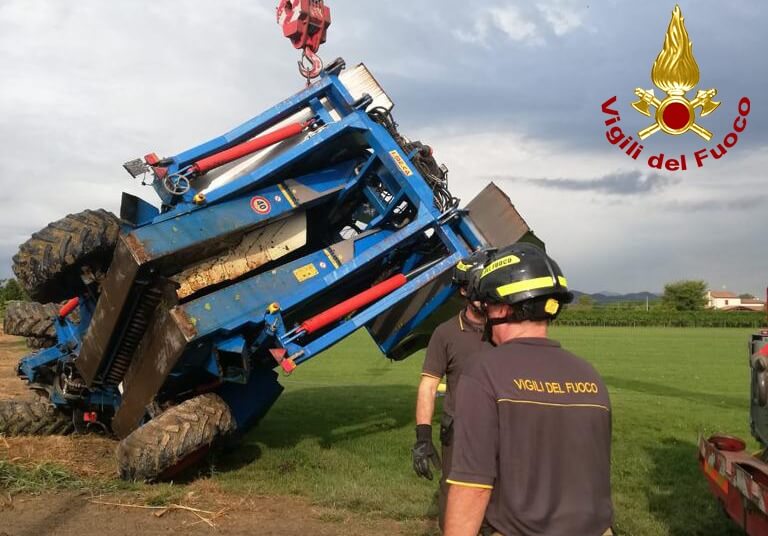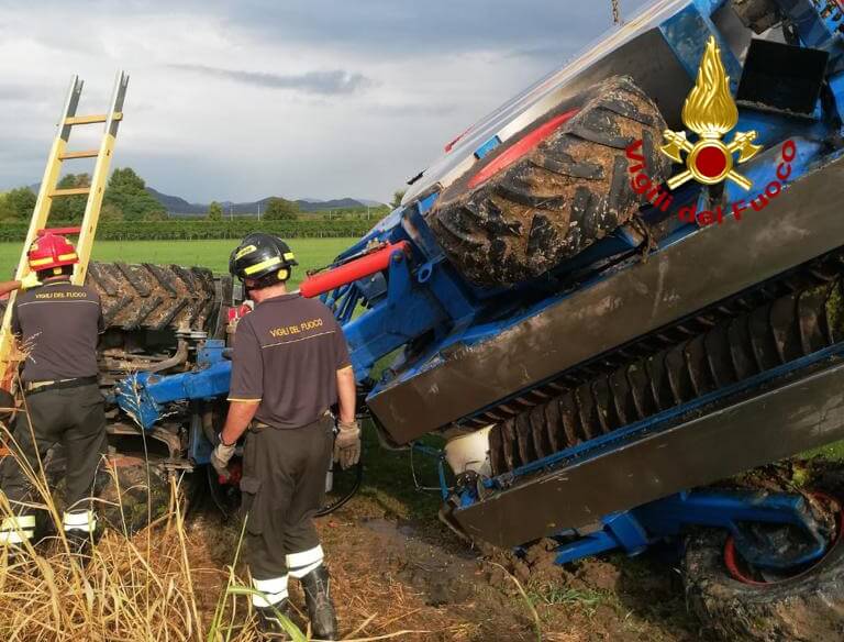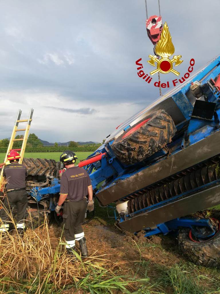 Poco dopo le 7:00, di mercoledì, i vigili del fuoco sono intervenuti in un campo agricolo di via Da Rio a Due Carrare per il rovesciamento di un trattore e una vendemmiatrice: ferito il conducente del mezzo. I pompieri arrivati da Abano Terme e Padova, hanno recuperato e raddrizzati i mezzi, mentre il conducente era già stato portato dai familiari in ospedale. Le operazioni di ripristino e messa in marcia dei mezzi sono terminate alle 10:30.