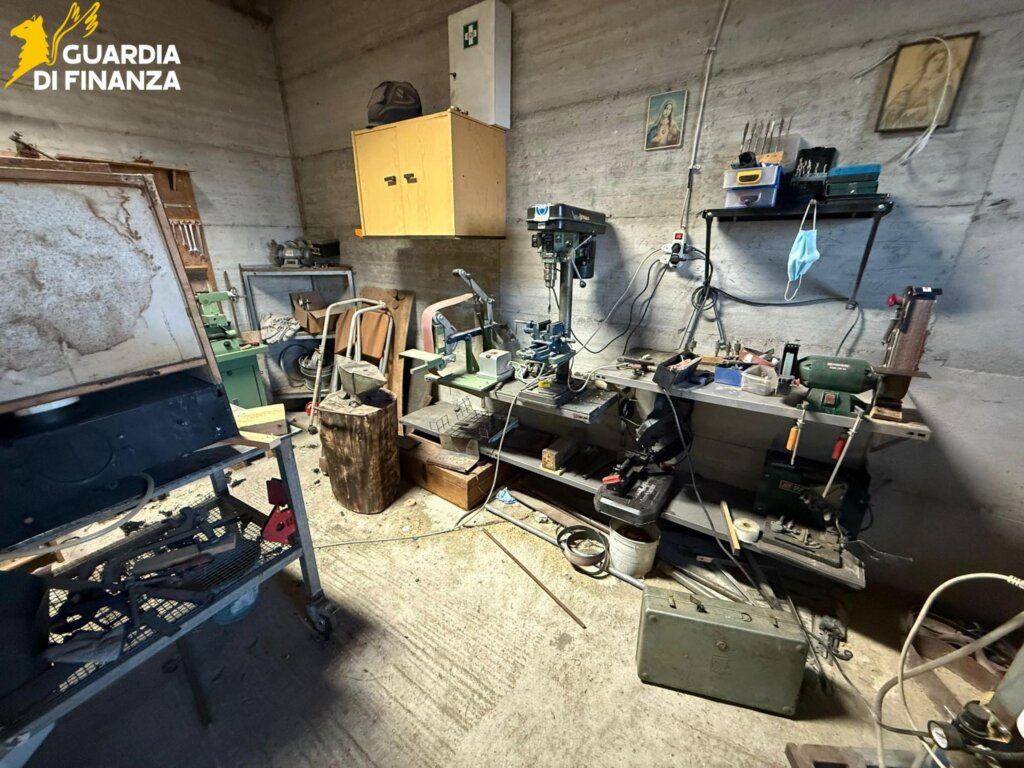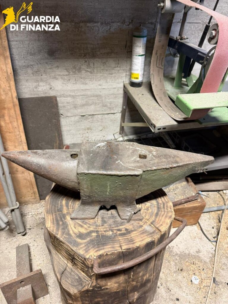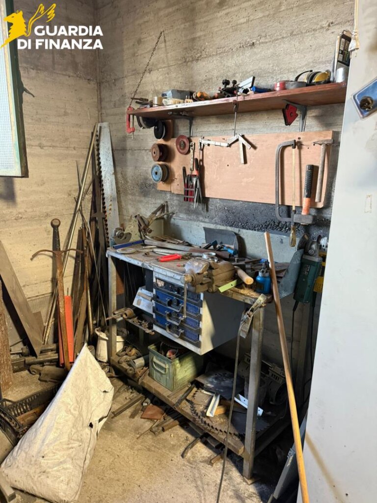 Nel corso della perquisizione locale, disposta dall’Autorità Giudiziaria, i militari hanno rinvenuto una vera e propria fucina dotata di fornace, martelli e incudini, dove due soggetti producevano spade e pugnali d’epoca senza la licenza prevista dall’art. 31 del T.U.L.P.S.