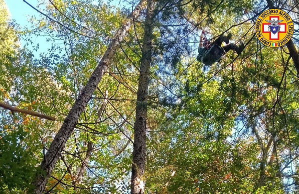 VENETO – Un altro tedesco in parapendio finisce sugli alberi (da inizio anno una decina): salvato dal Soccorso Alpino