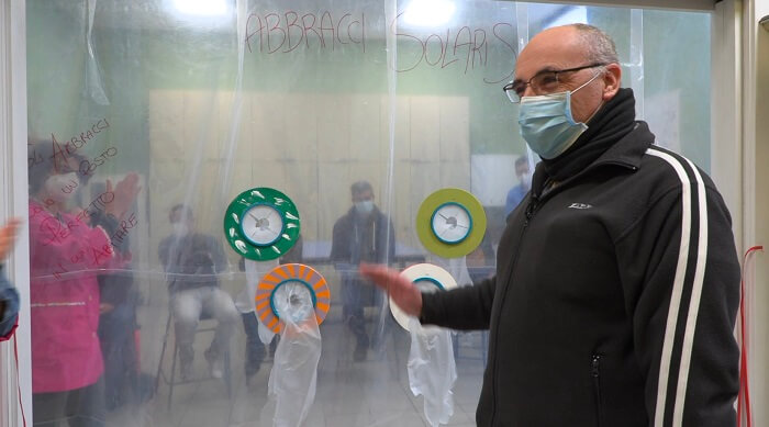 “Abbiamo visto che altre realtà dei servizi alla persona hanno realizzato iniziative simili e abbiamo pensato di riproporre questa bella idea perché può far del bene a tutti noi, utenti e operatori della cooperativa” raccontano da Solaris. Pur se doveroso, è talvolta difficile fare comprendere alle persone accolte nei servizi alcune regole di distanziamento. Il contatto fisico è veicolo di comunicazione per tutti, e le persone utenti dei servizi per la disabilità sentono in modo particolarmente forte l’esigenza di stare vicini. D’altronde, come dimostra anche la scienza, l’abbraccio stimola la produzione di ossitocina che aumenta i comportamenti pro-sociali come altruismo, generosità ed empatia e ci porta ad essere più propensi a fidarci degli altri.