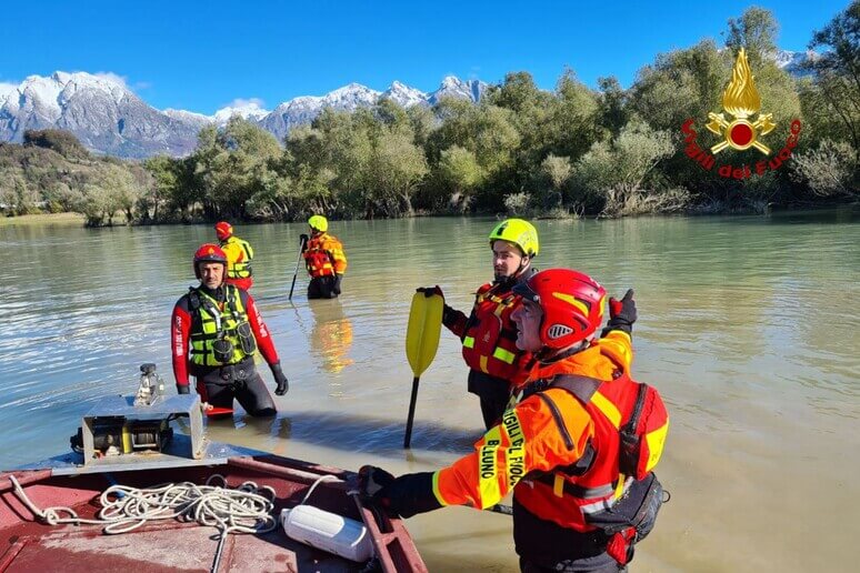 Presenti oltre 40 unità dei vigili del fuoco coordinate dal comandate Antonio del Gallo con squadre a terra, soccorritori fluviali e acquatici, sommozzatori, piloti di droni, esperti topografi e l’elicottero Drago 149 proveniente dal reparto volo di Venezia.