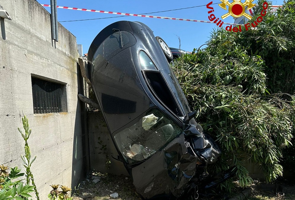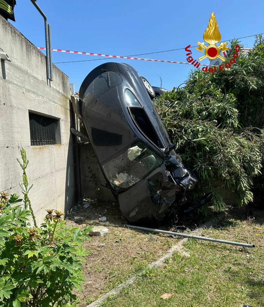 VENETO – Violento scontro: auto vola in un cortile privato, due feriti