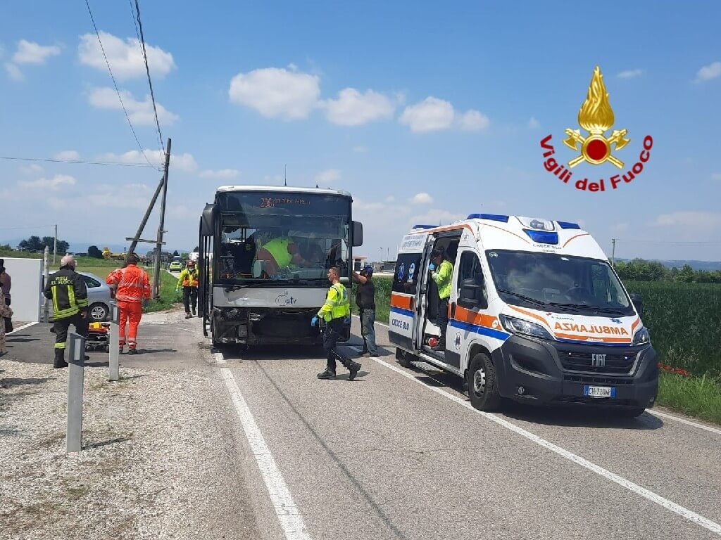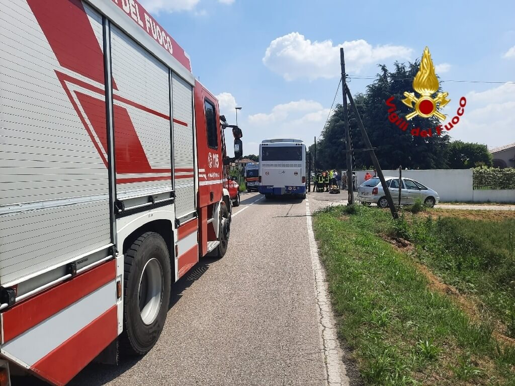 Alle ore 13.50, di giovedì, i vigili del fuoco sono intervenuti in località Baldaria in via Santa Giustina a Cologna Veneta per un incidente frontale tra un’auto e un autobus della società ATV, grave il bilancio: deceduti due anziani coniugi a bordo della vettura, feriti due studenti e l’autista del pullman. I vigili del fuoco arrivati da Caldiero, hanno messo in sicurezza i mezzi ed estratto l’autista dell’autobus rimasto incastrato, che è stato stabilizzato e trasferito in codice rosso in eliambulanza in ospedale. Trasferiti in ambulanza in ospedale i due studenti rimasti feriti. Niente da fare nonostante i soccorsi sanitari per i due coniugi ultraottantenni, deceduti sul colpo (marito e moglie 85enne e 82enne di Sarego). I carabinieri e la polizia stradale hanno deviato il traffico ed eseguito i rilievi del sinistro. Durante le operazioni di soccorso la strada è rimasta bloccata al traffico.