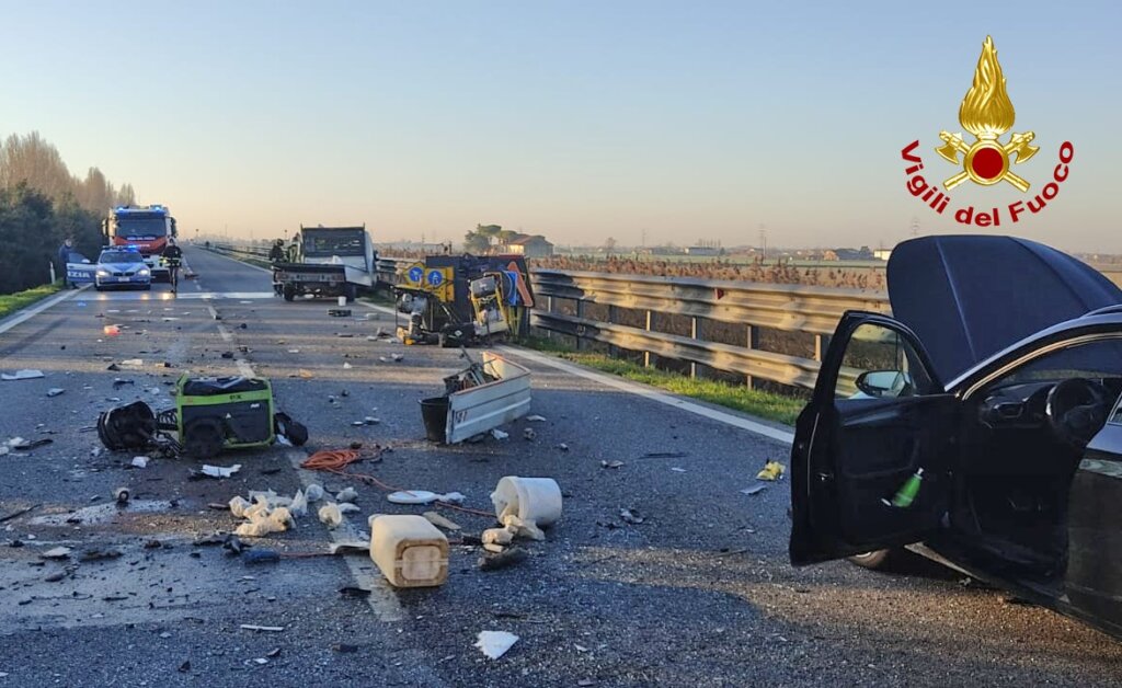 Sul posto sono intervenuti i sanitari del 118, che hanno soccorso i feriti, mentre i vigili del fuoco si sono occupati della messa in sicurezza dei mezzi. Le pattuglie della polizia stradale di Piove di Sacco hanno eseguito i rilievi per accertare le cause dell’incidente: tra le ipotesi, un possibile colpo di sonno dell’autista del furgone. Le sue condizioni sono gravi e la prognosi è riservata.