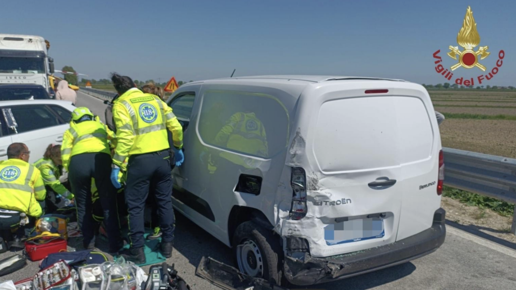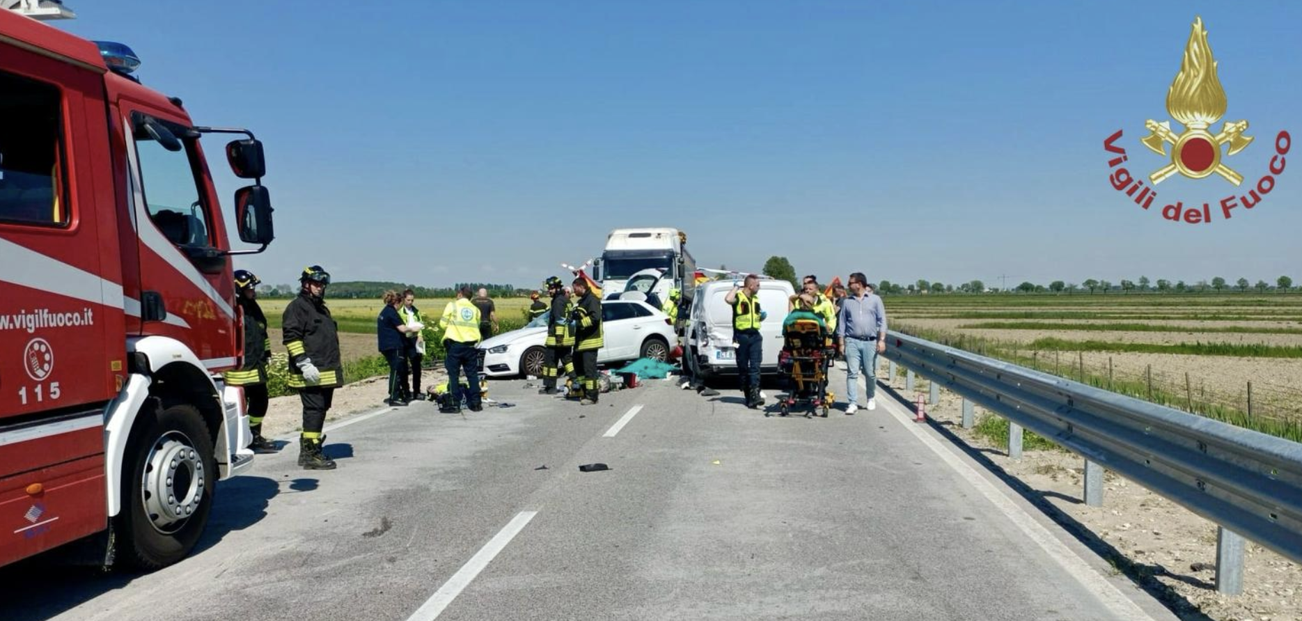 Veneto – Violento scontro tra 3 auto e 1 moto, grave il bilancio: 1 morto e 3 feriti (FOTO)