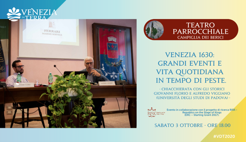 Sabato 3 ottobre, il Festival farà tappa a Campiglia dei Berici, comune capofila dell’iniziativa. Alle ore 18.00 appuntamento presso il Teatro Parrocchiale con gli storici Giovanni Florio e Alfredo Viggiano, responsabile scientifico del Festival: in una chiacchierata informale e aperta a tutti si parlerà di «Venezia 1630: grandi eventi e vita quotidiana in tempo di peste» (ingresso contingentato fino ad esaurimento posti). Alle ore 21.00 il Festival si sposterà presso la Chiesa di S. Pietro Apostolo per «Magnifica e Gloriosa Serenissima» concerto con musiche di A. Vivaldi a cura dell’Ensemble vocale e strumentale Amici della Musica diretti dal Maestro Antonio Zeffiro. Numero di posti limitato. Prenotazione obbligatoria fino ad esaurimento posti disponibili al numero: 347 9648605 (gradito SMS o messaggio WhatsApp) o scrivere all’indirizzo e-mail: cultura@comunecampiglia.vi.it