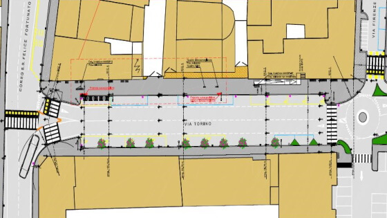 L’intervento punta al completamento della rigenerazione della zona, cominciata con la riqualificazione di via Firenze e proseguita con le opere di urbanizzazione nel tratto di viale Torino, compreso tra le vie Firenze e Genova, necessarie per la nuova attività commerciale realizzata nell’area dell’ex Domenichelli.