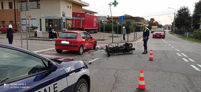 Incidente a Sarcedo, mercoledì 9 novembre 2022 alle ore 12.00 circa. All’incrocio di via Santa Maria con via Generale Dalla Chiesa, una Peugeot condotta da uomo residente a Sarcedo, per cause in corso di accertamento, svoltando a sinistra in via Generale Dalla Chiesa, si è scontrata con una Harley Davidson, proveniente da Montecchio Precalcino, condotto da uomo di Sarcedo. A seguito dell’urto il motociclista è stato sbalzato rovinosamente a terra riportando lesioni. Sul posto è intervenuta una ambulanza del Suem 118 che ha trasportato il motociclista all’Ospedale di Santorso in codice giallo e, per i rilievi del sinistro stradale una pattuglia del consorzio Polizia Locale Nordest Vicentino.