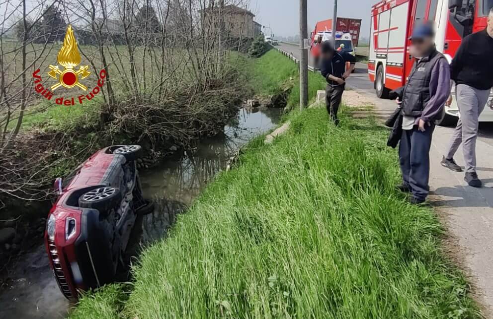 VICENTINO – Auto rovesciata in un canale di scolo: si salva l’autista