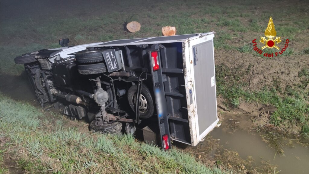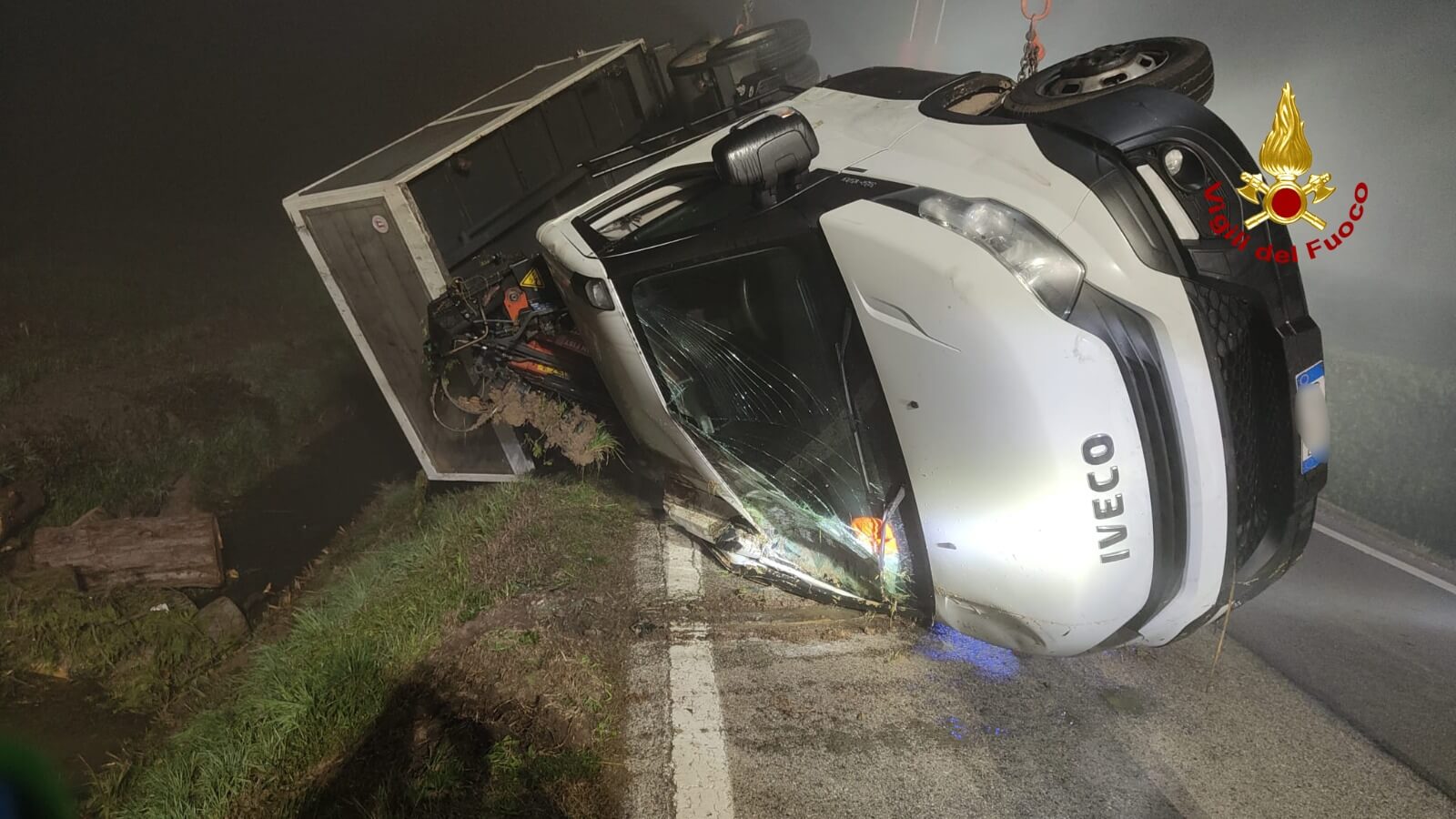 VICENTINO – Furgone carico di tronchi finisce fuori strada