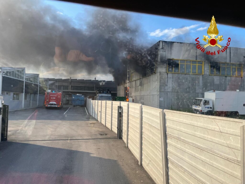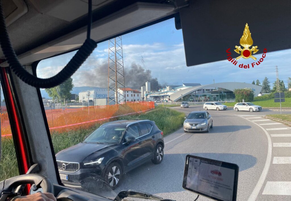 VICENTINO – Incendio in azienda che tratta rifiuti, sul posto l’Arpav (video)