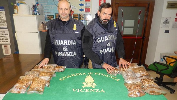 Manette per i due marocchini e per l’algerino, mentre il giorno successivo, ovvero il 26 gennaio, i finanzieri del Comando Provinciale di Vicenza sono riusciti a catturare anche il destinatario del carico di droga sequestrato: infatti, quando sono state fermate le due autovetture estere, accortosi dell’intervento delle Forze dell’Ordine, il marocchino E.K., di anni 31, residente a Lonigo, era riuscito a darsi alla fuga a bordo della propria autovettura, sottraendosi all’arresto in flagranza di reato. Sulla base delle prove raccolte dalla Guardia di Finanza, il Pubblico Ministero ha emesso un fermo di indiziato di delitto nei confronti dello spacciatore nordafricano, che è stato rintracciato a bordo di un’autovettura nei pressi di Arzignano e catturato dai militari; quindi anch’egli è stato associato al carcere di Vicenza. Il soggetto marocchino di Lonigo, ormai da tempo monitorato dalle Fiamme Gialle vicentine, aveva creato una propria rete di spaccio nella provincia berica, fino ad approvvigionare anche diversi pusher dell’Alto vicentino, ove distribuiva lo stupefacente a spacciatori minori incaricati della vendita “al dettaglio”.