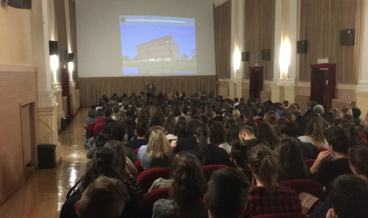 Lunedì mattina 600 studenti delle scuole secondarie di Vicenza – Fogazzaro, Quadri, Pigafetta, Piovene, Boscardin, Da Schio, Baronio, Oxford e circa 60 ragazzi della High School della Caserma Ederle – sono stati accolti al Cinema Odeon dal professor Rex M. Ellis e dal consigliere delegato alle politiche giovanili Giacomo Possamai che hanno introdotto una mattinata di approfondimento sul tema della schiavitù negli Stati Uniti. E’ stata anche l’occasione per conoscere il nuovo Museo nazionale di storia e cultura afroamericana dello Smithsonian Institution con sede a Washington di cui Rex M. Ellis è Associate Director for Curatorial Affairs. Il museo – inaugurato nel settembre 2016 alla presenza dell’allora presidente Barack Obama – fa parte della Smithsonian Institution, istituzione didattica e museale statunitense che gestisce i più grandi musei della città. Il museo viene considerato il necessario completamento del racconto della storia degli Stati Uniti e, in particolare, delle vicende degli afroamericani nel percorso di integrazione L’evento è stato organizzato dall’Ufficio politiche giovanili in collaborazione con il Consolato USA di Milano con cui da qualche anno si è instaurata una proficua collaborazione.