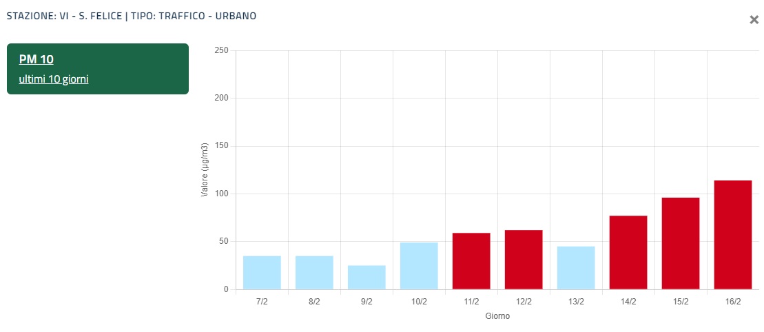 A San Felice nella giornata di ieri rilevati 114 µg/m³