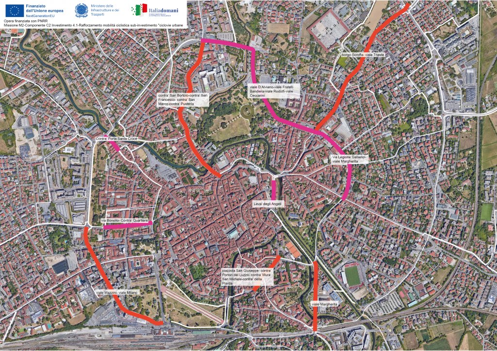 Gli interventi sono finanziati dal Pnrr nell’ambito della missione 2, componente 2, investimento 4.1 per il rafforzamento della mobilità ciclistica e delle ciclovie urbane.