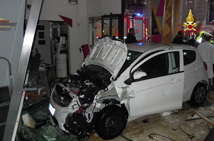 VICENZA – Auto sfonda vetrina, quattro feriti – VIDEO