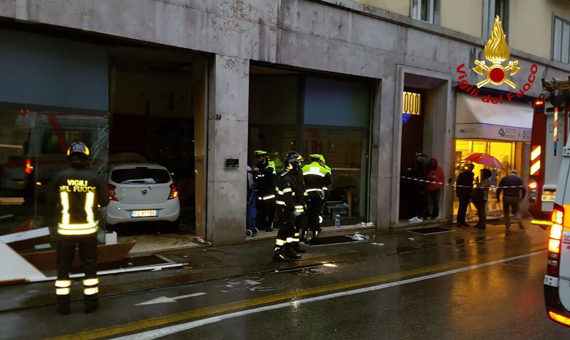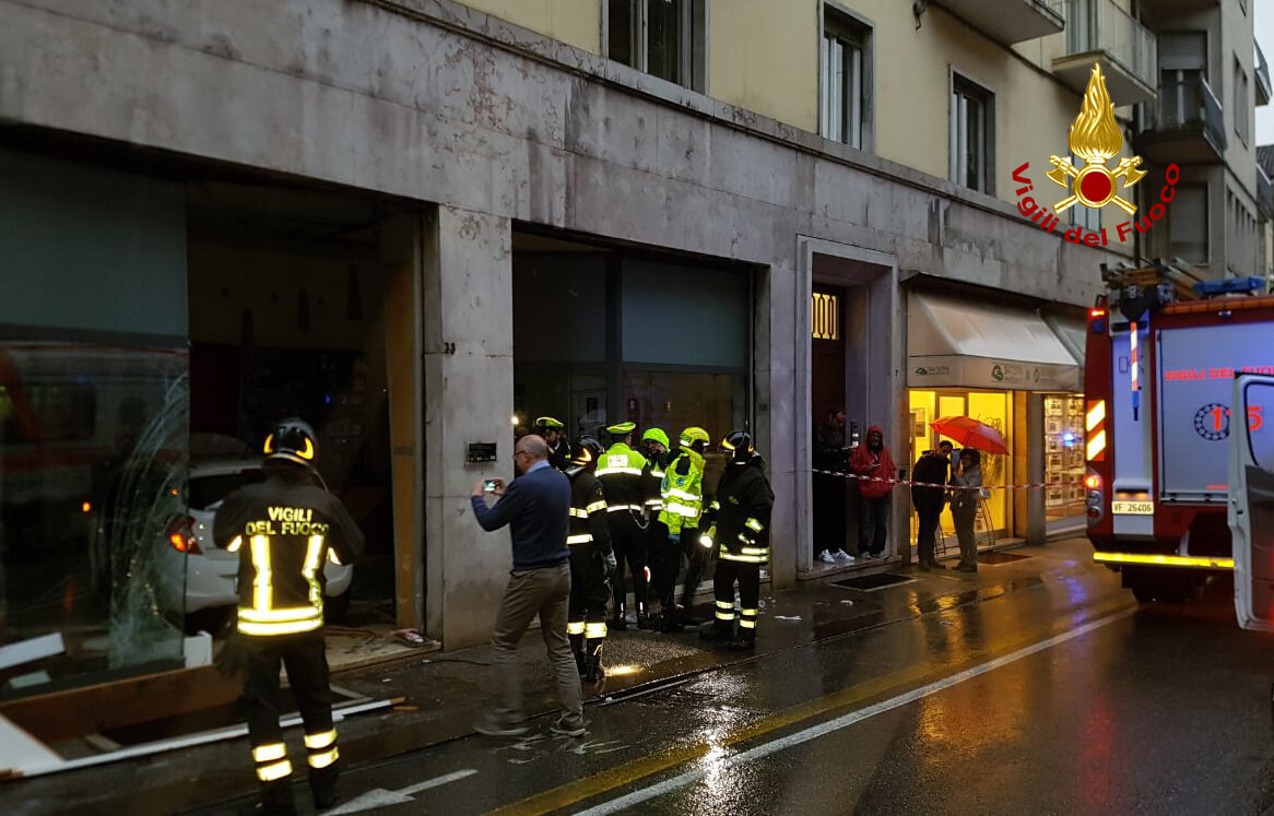Alle ore 18.45, i vigili del fuoco sono intervenuti in corso San Felice e Fortunato a Vicenza per un automobilista, che dopo aver perso il controllo della vettura ha sfondato la vetrina di un negozio di ottica, finendo completamente all’interno: quattro i feriti. I vigili del fuoco hanno messo in sicurezza l’Opel Karl e collaborato con il personale del suem 118 nel soccorrere i feriti. L’automobilista era appena uscito dalla sbarra che delimita il parcheggio privato delle ex scuole Giusti, quando probabilmente per un malore ha proseguito diritto senza riuscire a fermarsi. Una donna che stava transitando davanti il negozio ha cercato di ripararsi, ma è stata colpita dai detriti della vetrina sfondata, rimanendo ferita. Oltre l’autista sono rimasti coinvolti un’altra donna e un bambino che erano in macchina.