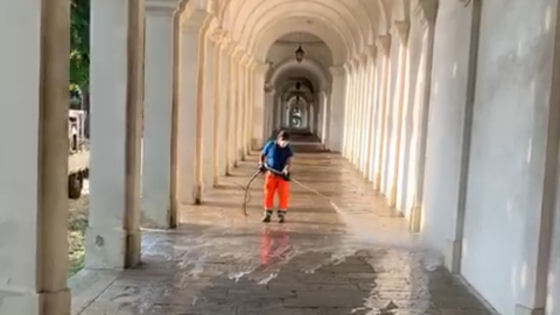 Aim Ambiente ha provveduto a ripulire le aree del bivacco dai cartoni utilizzati come giacigli e dai rifiuti abbandonati. Lungo i portici di viale X Giugno la pavimentazione è stata lavata e disinfettata con una lancia d’acqua ad alta pressione.