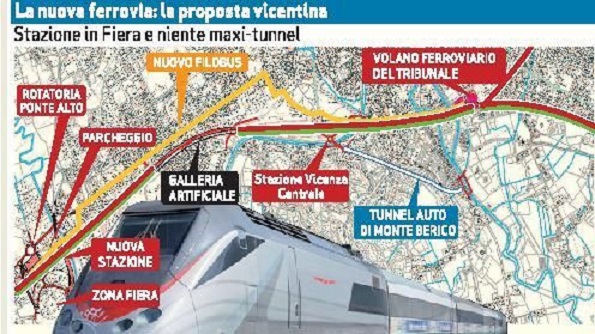 Il prossimo lunedì 12 gennaio, il Consiglio comunale è convocato per votare lo studio di fattibilità dell’alta velocità a Vicenza. Un progetto che quadruplica la linea ferroviaria, raddoppia le stazioni dismettendo quella attuale e da ovest a est della città ridisegna interi quartieri, abbatte decine di edifici, sventra con un tunnel Monte Berico, sposta fabbriche e progetta nuovi insediamenti.