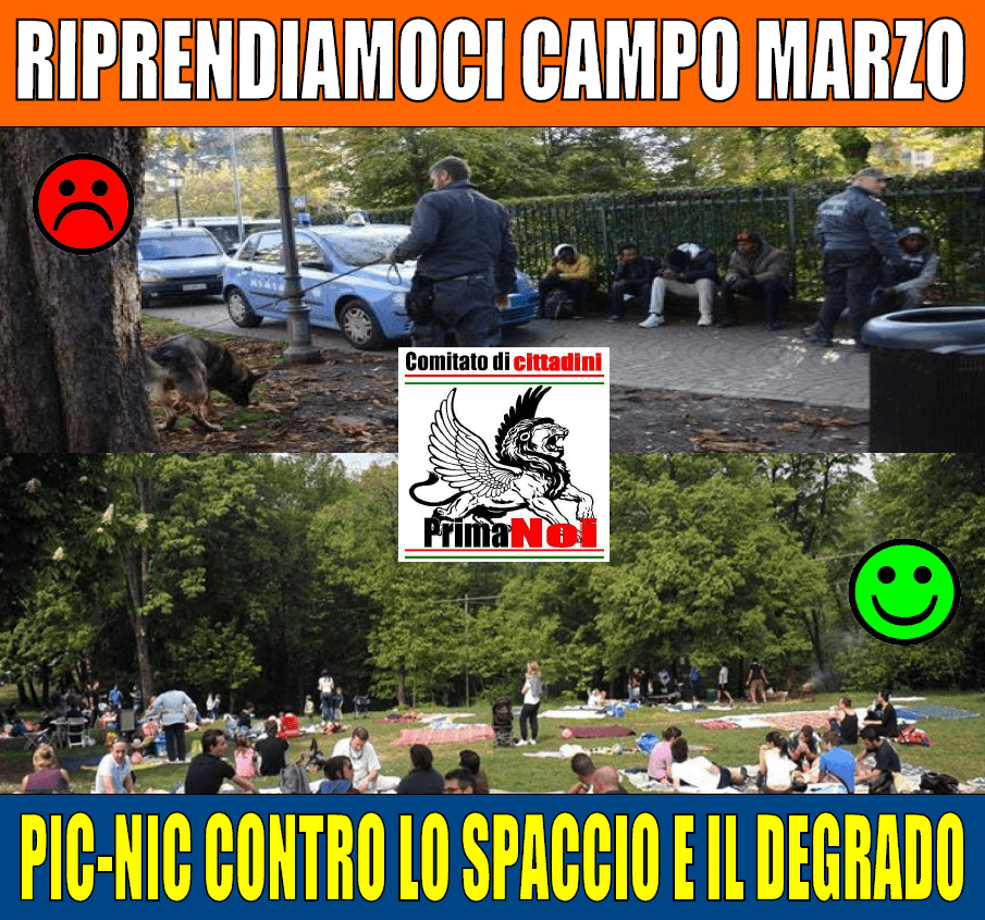 Sui problemi che interessano il parco cittadino che fa da cerniera tra la stazione dei treni e il centro storico, i rappresentanti del comitato di cittadini PrimaNoi, hanno diffuso sulla propria pagina Facebook, l’idea di organizzare per uno dei prossimi fine settimana un picnic a campo Marzo. Sarebbe una sorta di flash mob per coinvolgere attivamente i residenti e tutti coloro che hanno a cuore il decoro e la sicurezza della porta d’ingresso del capoluogo berico.