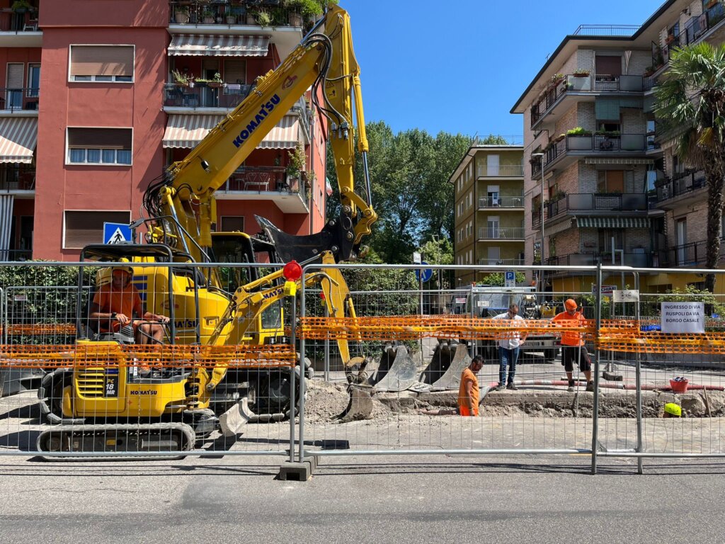 Nel corso del sopralluogo è stato posto l’accento su quanto già realizzato, sottolineando l’impegno congiunto delle istituzioni e delle aziende coinvolte. Nello specifico, è stata ultimata la sostituzione della rete fognaria lungo viale Trissino e Borgo Casale fino a via Parisotto; è stata completata la posa della nuova rete acquedottistica lungo Borgo Casale, con gli allacci già quasi tutti operativi; è stata posata la nuova rete gas metano e quella di telecomunicazioni sempre lungo Borgo Casale; sono poi stati realizzati nuovi cavidotti elettrici in via Ruspoli.