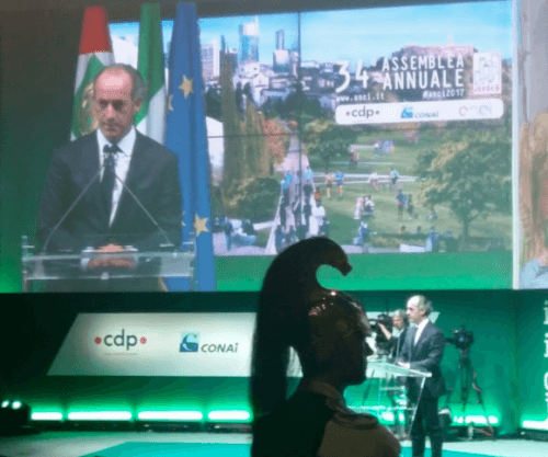Ad esempio, questa Fiera dove ci troviamo è frutto del coraggio di due Amministrazioni comunali e provinciali Vicenza e Rimini, con il mio collega Andrea Gnassi, che hanno unito le loro Fiere dando vita a IEG, secondo gruppo industriale fieristico per fatturato in Italia, primo per redditività, primo per organizzazione diretta di eventi, una delle grandi fiere internazionali europee. Questo è importante, si fa con il coraggio, e noi il coraggio lo abbiamo.