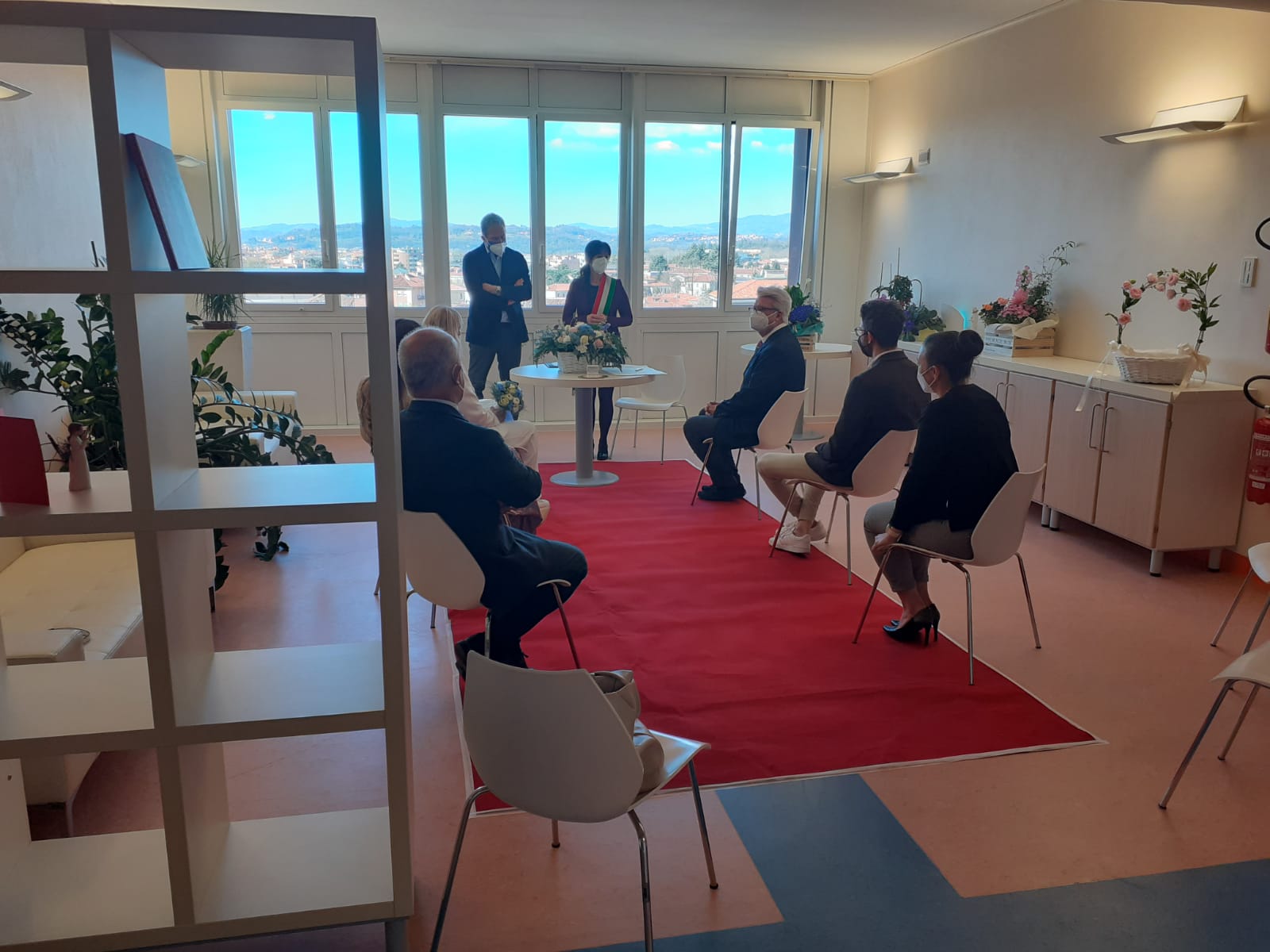 Evento curioso ieri nel reparto di Ematologia dell’ospedale San Bortolo: M.E. – degente nel reparto per una grave neoplasia acuta – si è unito in matrimonio con B.R., compagna di una vita. Una bella stanza, assolata, all’ultimo piano dell’ospedale berico, ha visto officiare il rito civile, presenti due rappresentati del Sindaco, i due figli e i due emozionati testimoni, la Coordinatrice Giulia per lui, il Direttore Marco Ruggeri per lei. Vestito grigio scuro con sgargiante cravatta floreale per lo sposo, un elegantissimo tailleur bianco per la sposa. Al termine della cerimonia, condotta nella stretta osservanza delle norme anti-COVID, gli sposi hanno festeggiato con un brindisi, offerto dalla Direzione Medica, che ha curato assieme a Giulia la riuscita organizzazione della celebrazione. Agli sposi va l’augurio di tutto il personale di Ematologia, in rappresentanza degli operatori del San Bortolo, con il sincero auspicio a M.E. di vincere la battaglia, per tornare da B.R. e avere una lunga vita assieme.