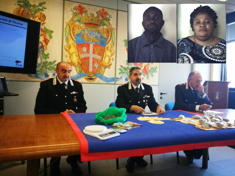 I Carabinieri del Nucleo Investigativo del Comando Provinciale di Vicenza, hanno arrestato ieri (12 ottobre 2017) in flagranza di reato di “detenzione ai fini di spaccio di stupefacenti” una coppia di cittadini nigeriani, da circa 7 anni in città, residenti in contrà San Francesco. Si tratta di IDAHO Joy, 34enne e del convivente JOSEPH Lucky, 41enne. L’arresto dei due nigeriani, che vivevano in condizioni di benessere e apparentemente lontani dai giri di droga che coinvolgono per la maggior parte connazionali a Campo Marzo, è un nuovo capitolo dell’operazione Princess, che i carabinieri conducono ormai da mesi e che ha portato nei mesi di marzo e aprile all’arresto di due corrieri donna della droga.