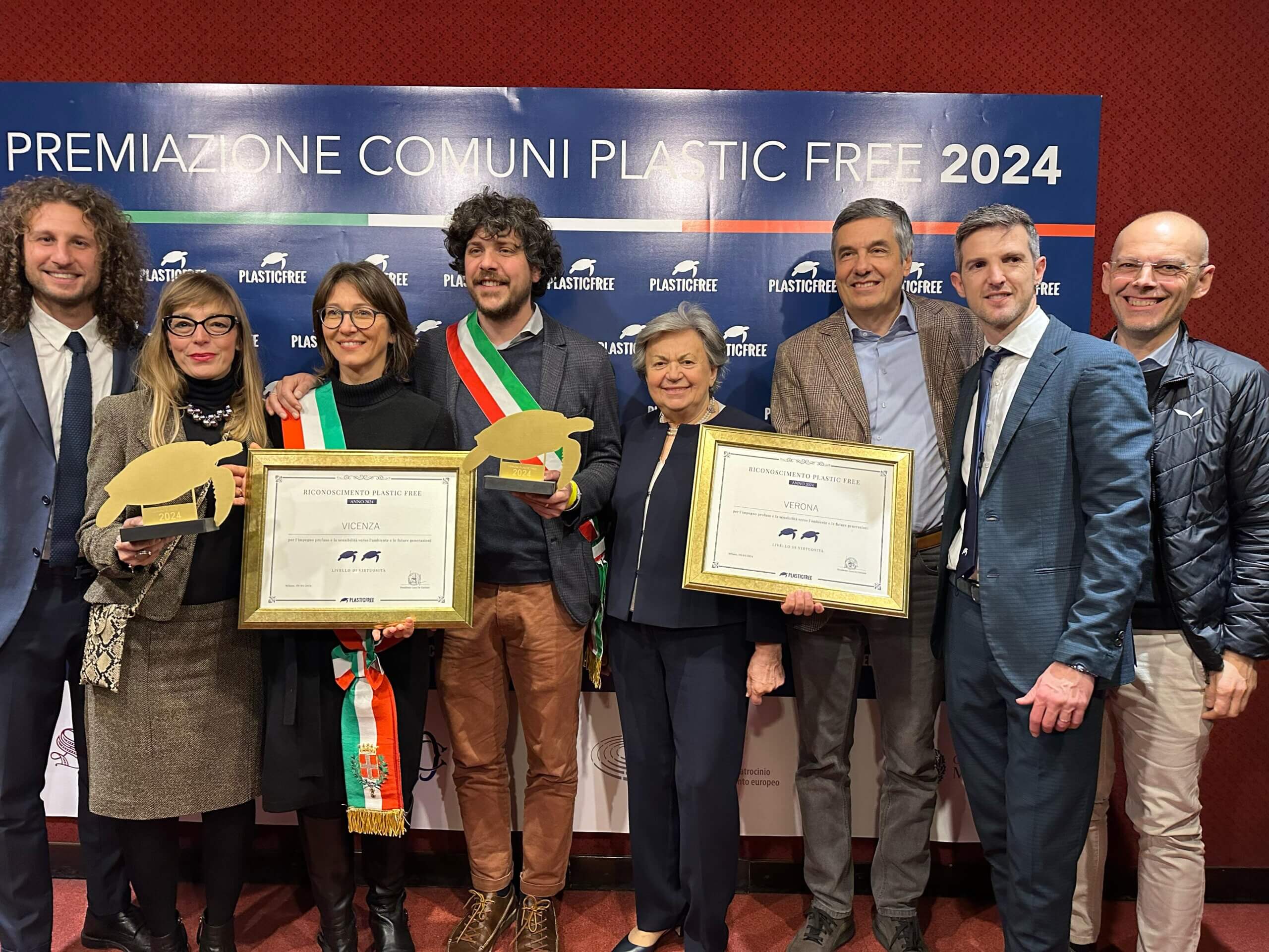 Vicenza si conferma un Comune Plastic Free. Anche quest’anno il capoluogo berico si è aggiudicato il riconoscimento dell’associazione impegnata in azioni di volontariato per la sensibilizzazione sull’inquinamento da plastica. La cerimonia, svolta sabato al teatro Carcano di Milano, ha premiato 111 Comuni, di cui 13 della Regione del Veneto. L’assessore all’ambiente Sara Baldinato, insieme alla referente vicentina dell’associazione Gaia Rovati, ha ritirato il premio a forma di tartaruga e l’attestato di virtuosità che assegna a Vicenza due tartarughe.