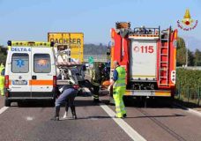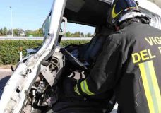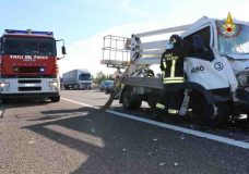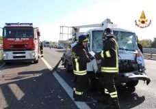 I vigili del fuoco sono intervenuti questa mattina intorno alle 10.45 lungo l’autostrada A4, tra i caselli di Vicenza Est e Ovest in direzione Milano per un tamponamento tra un camioncino snorkel Nissan Cab Star e un autotreno Volvo FH 500. Necessario l’utilizzo di divaricatori e cesoie idrauliche per liberare il conducente del furgone, un Albanese di 42 anni residente a Padova, rimasto incastrato nella cabina deformata del mezzo. Sul posto anche i sanitari del Suem, che, dopo aver prestato primo soccorso, hanno trasferito in ospedale il ferito. Presenti anche polstrada e personale ausiliario di viabilità dell’autostrada Brescia-Padova.
