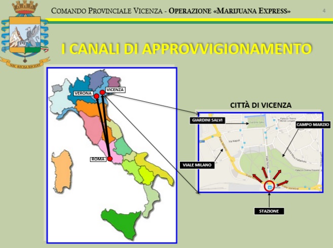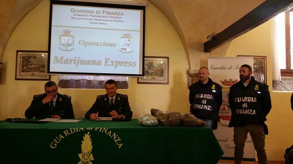 Le attività odierne – che si inquadrano nell’ambito dell’Operazione “MARIJUANA EXPRESS” condotta dalla Sezione Mobile del Nucleo PT di Vicenza – rappresentano il culmine delle investigazioni, coordinate dal Sostituto Procuratore della Repubblica di Vicenza, dott.ssa Giulia Floris, attraverso le quali è stata individuata un’organizzazione criminale dedita allo spaccio di droga nel capoluogo berico, che si approvvigionava, con cadenza settimanale, da fornitori della capitale, dove è stato individuato il fulcro del canale di rifornimento della marijuana.