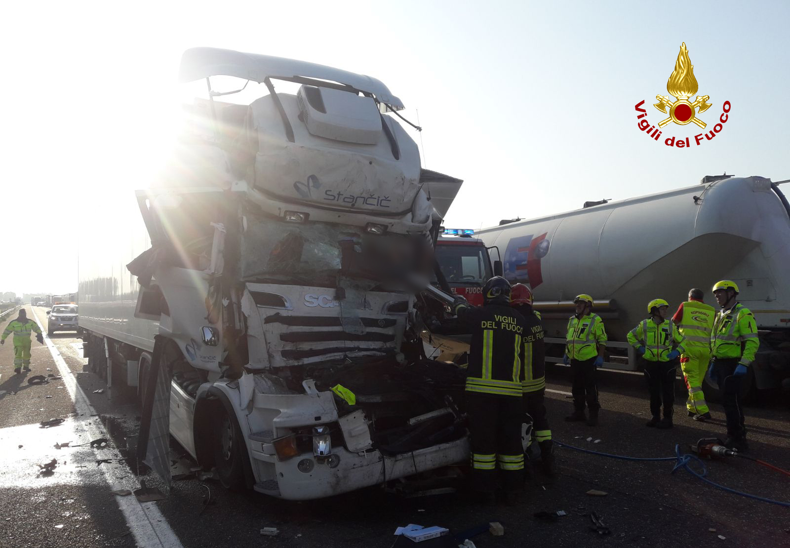VICENZA EST/GRISIGNANO - Scontro tra tir in autostrada, in corso l'intervento di recupero dei mezzi (Foto e video) | TViWeb VICENZA EST/GRISIGNANO - Scontro tra tir in autostrada, in corso l'intervento di recupero dei mezzi (Foto e video) | TViWeb