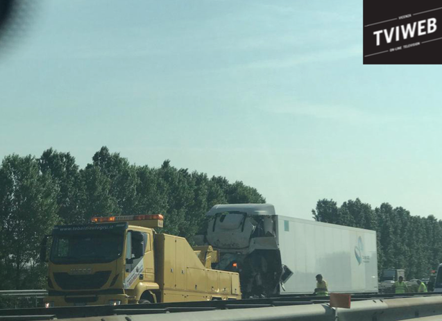 VICENZA EST/GRISIGNANO – Scontro in autostrada tra 4 tir: 1 morto. Caselli chiusi e 12 km di coda