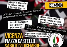 Forza Nuova e Mis di Vicenza annunciano con un comunicato una manifestazione per sabato 2 dicembre in città.