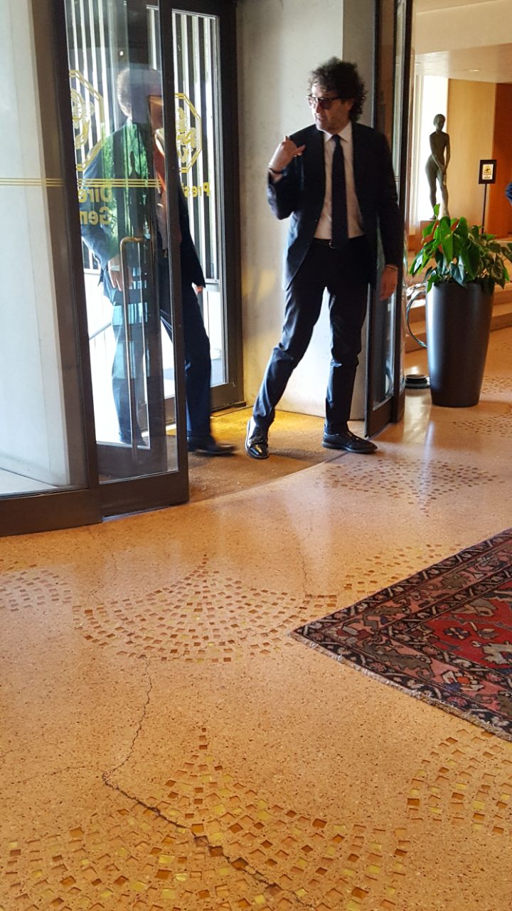 Eliano Omar Lodesani, direttore operativo di Banca Intesa, sorpreso mentre entra oggi nella sede della Banca Popolare di Vicenza di Btg Framarin: finisce ufficialmente un’era di 150 anni.