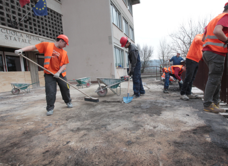 Lavori in corso nella sede di via Carta della scuola media Maffei. E all’opera, per sistemare la scala esterna d’accesso, ci sono undici studenti del Centro edile Andrea Palladio, che stanno svolgendo un tirocinio formativo e di orientamento al servizio della comunità, nell’ambito della convenzione sottoscritta lo scorso novembre da Comune di Vicenza, Centro edile e Aim Amcps. Il progetto, dal nome “Impresa civica”, coinvolge una trentina di studenti delle classi seconde e terze in interventi di manutenzione su immobili comunali, in particolare edifici scolastici. Le attività hanno preso il via nei mesi scorsi con tavoli tecnici di pianificazione e individuazione degli interventi, e questo alla scuola media del quartiere dei Ferrovieri è il primo a prendere avvio.
